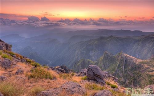 12、进入山门,首先映入眼帘的是漫山遍野的杜鹃花,那一簇簇红杜鹃竞相开放,峭崖上、松林间,有的像娇弱的仙女在林间飞舞,有的像一群红衣少女在轻歌曼舞。